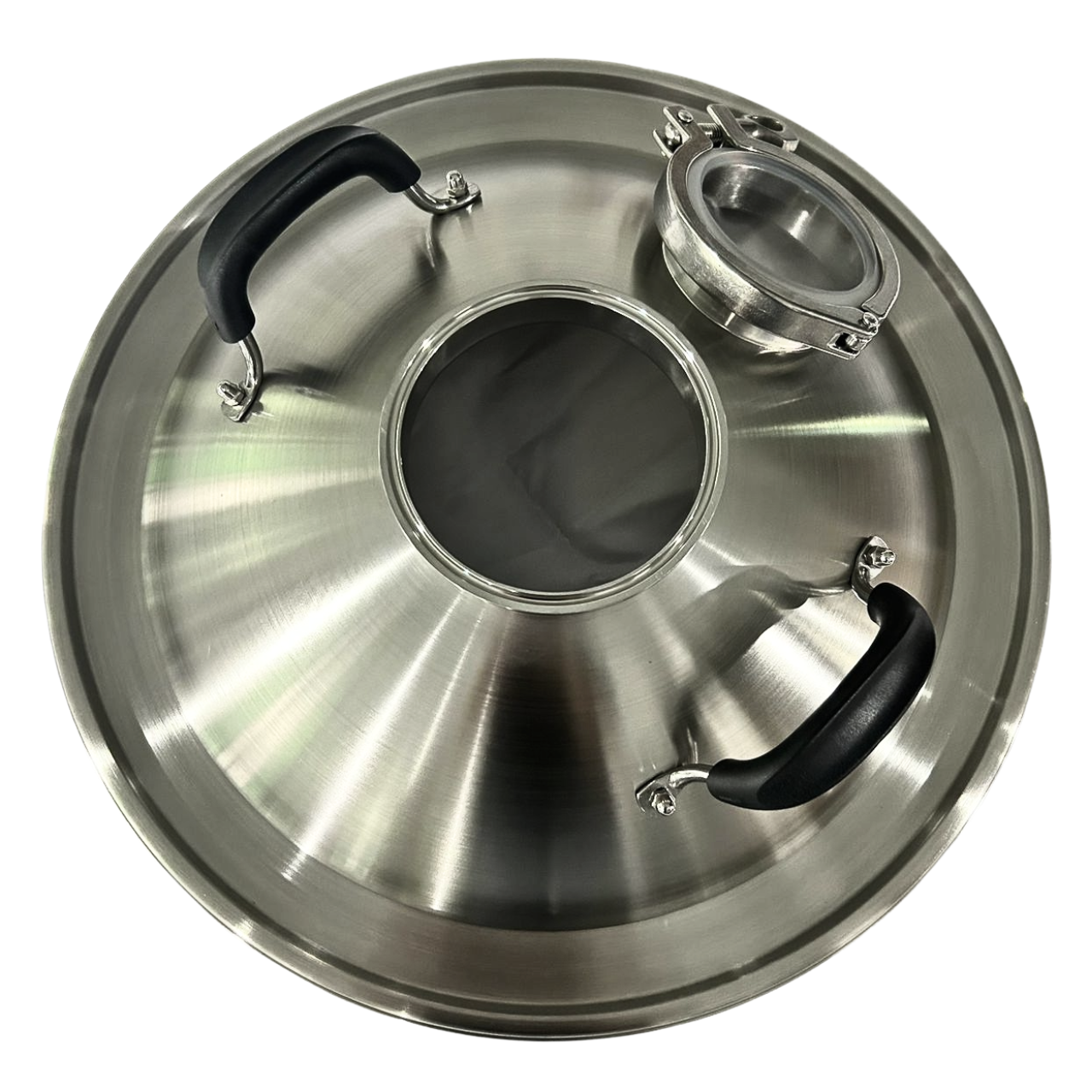 - 70L stainless steel lid with 4" TC top port and 3" sight glass port
