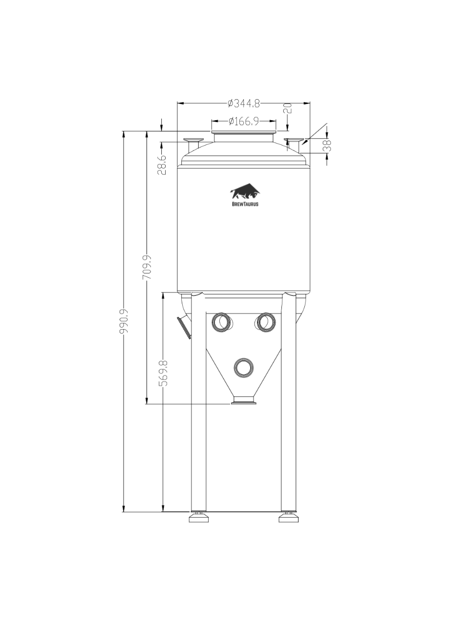 - Dump / bottom port: 1 × 2" Tri-Clamp (yeast/trub dump)