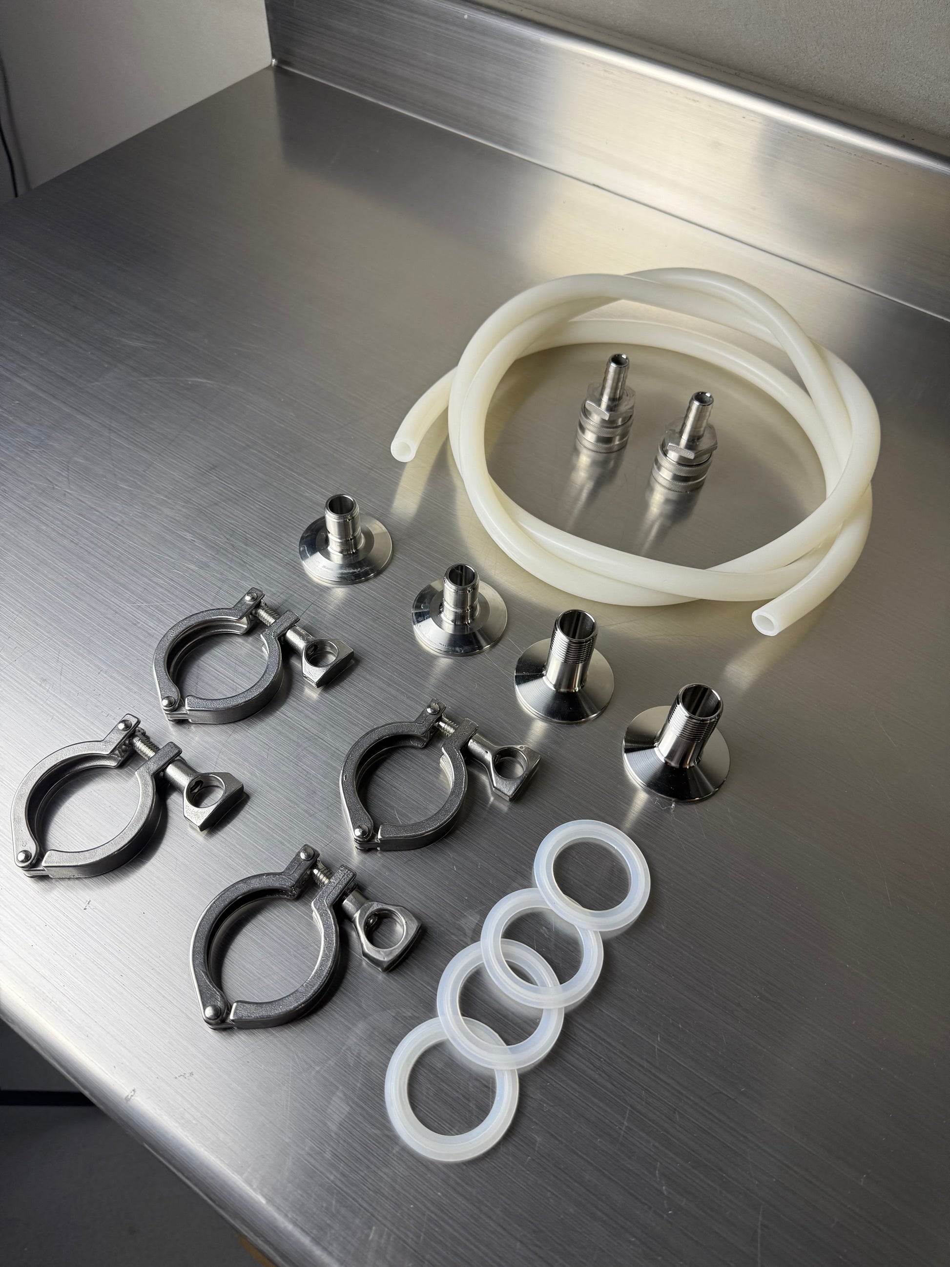 Plug. Click. Chill. Turn your BrewTaurus Counterflow Chiller into a plug-and-brew machine. This kit bridges your chiller, garden hose, and brewing system with quick connects and rock-solid 1.5" tri-clamp hardware—so you hit knockout temp fast and without leaks.