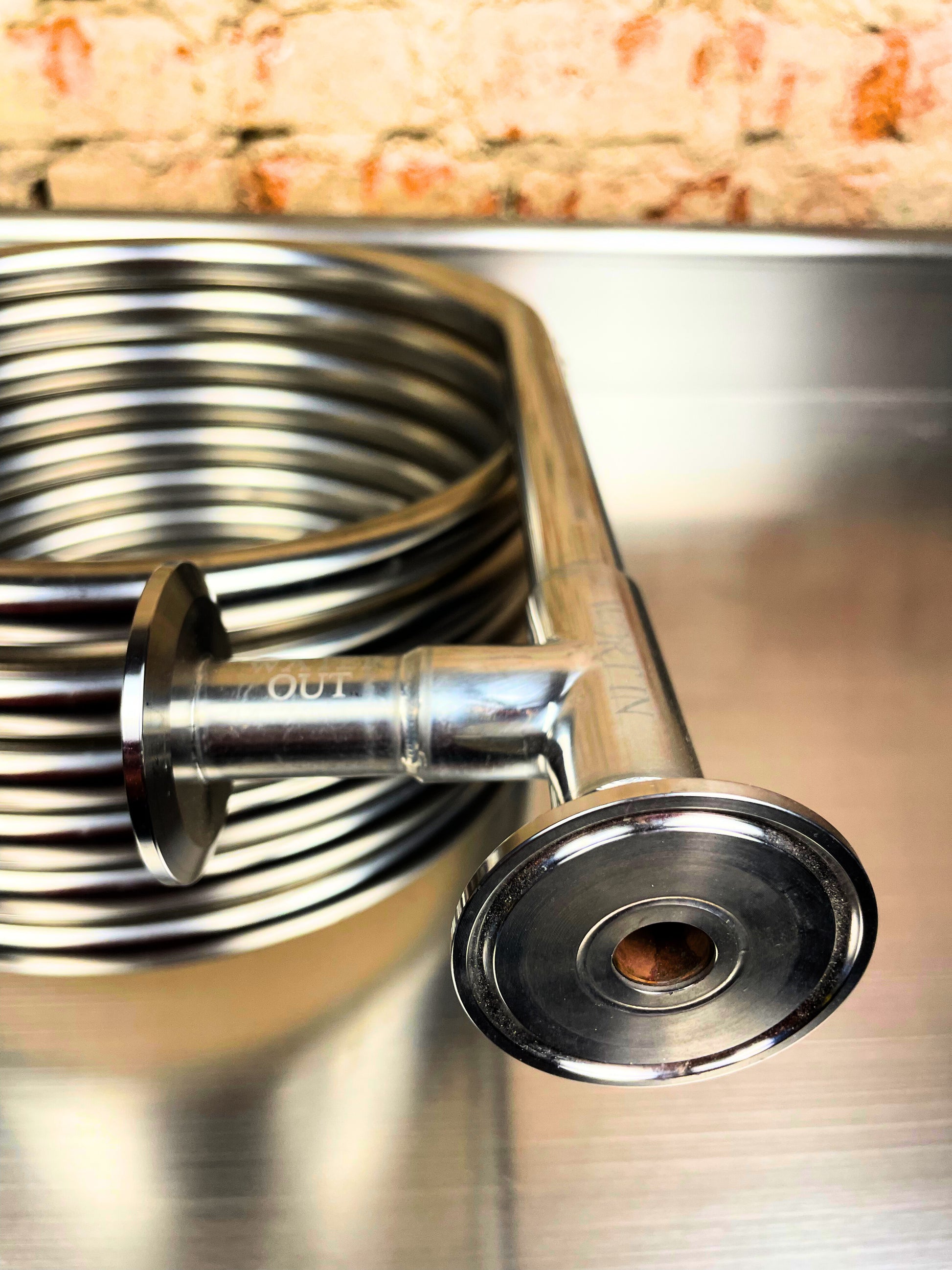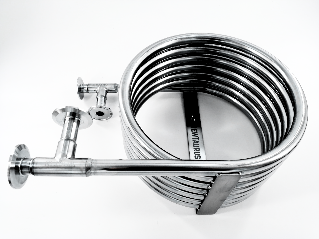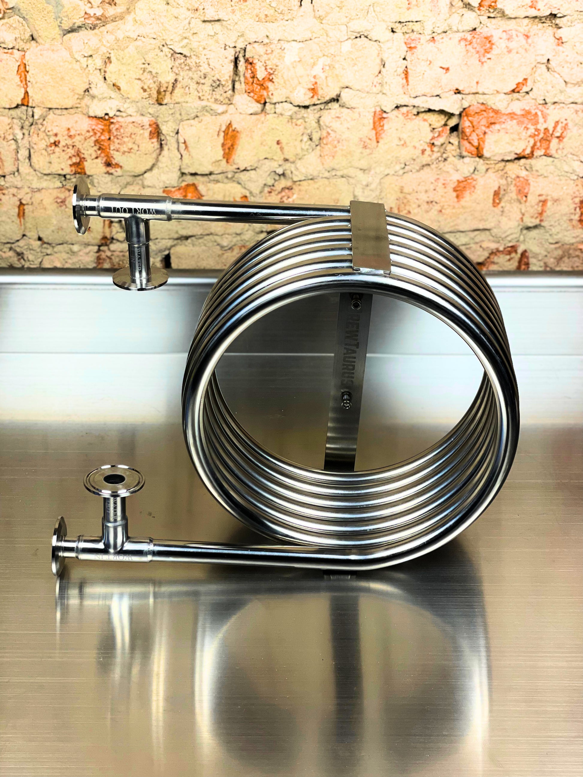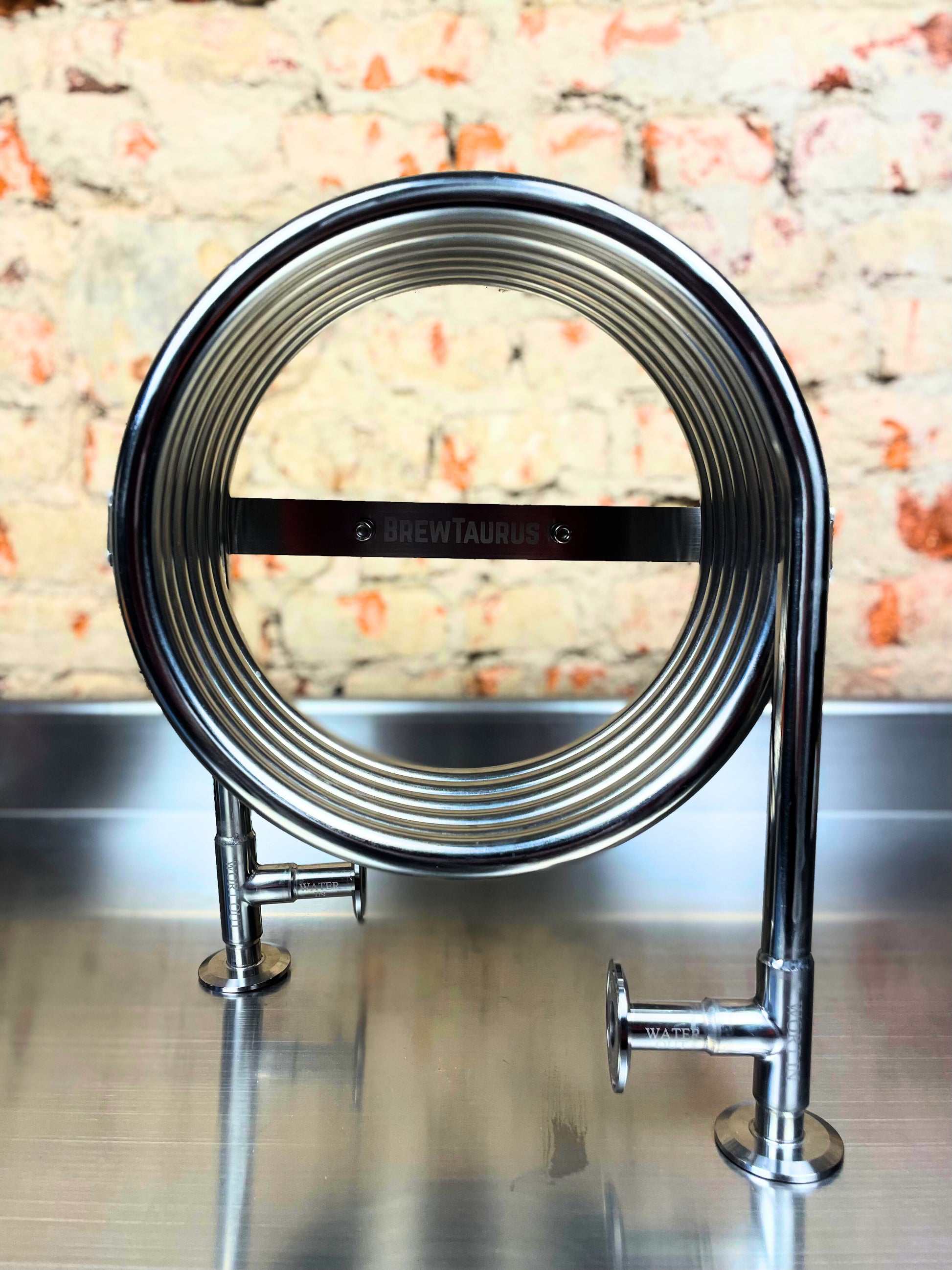 Boost your brewing game with the BrewTaurus counterflow wort chiller, a standout addition to any homebrewer's arsenal. Imagine efficiently cooling your hot wort through an advanced inner twisted copper tube, while cold water flows in reverse within a durable stainless steel outer shell. This chiller is not just an upgrade, it's a revolution in cooling, offering a performance that's significantly faster than traditional submersible or fully stainless steel models.