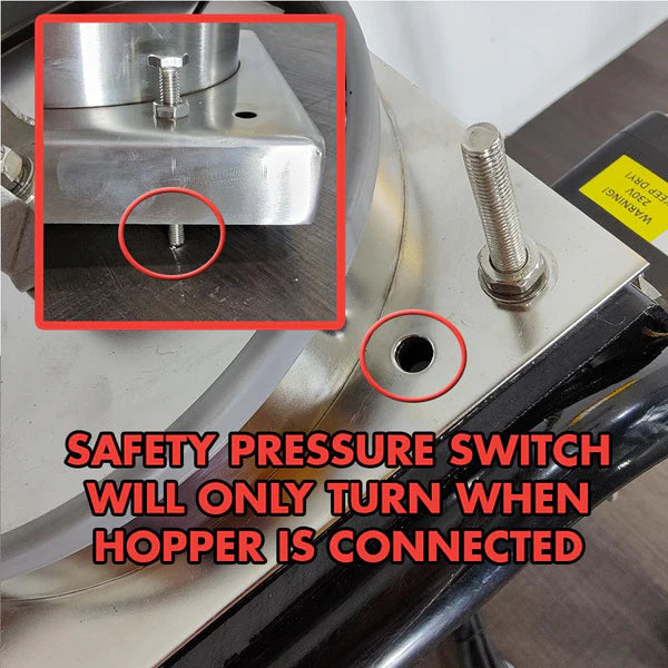 - Integrated safety lockout switch – the unit only powers on when the hopper and blade cover are properly in place