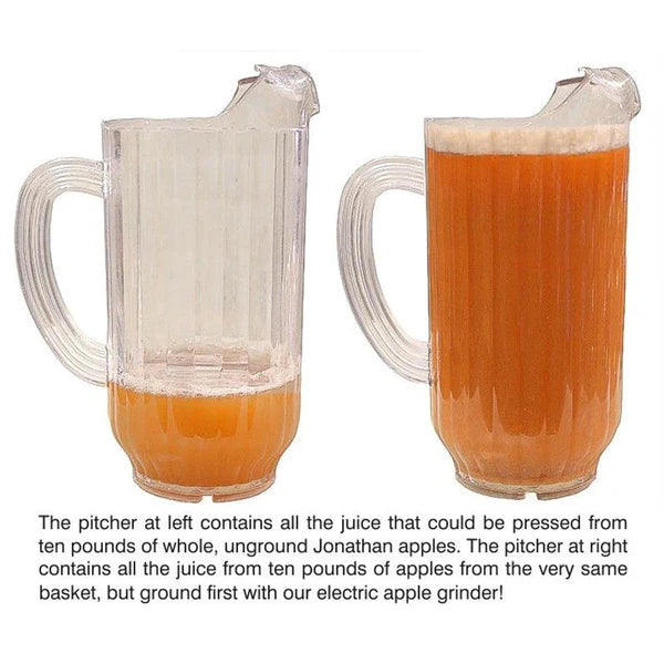 - Super-fast grinding for apples, pears, grapes, and pitless fruits